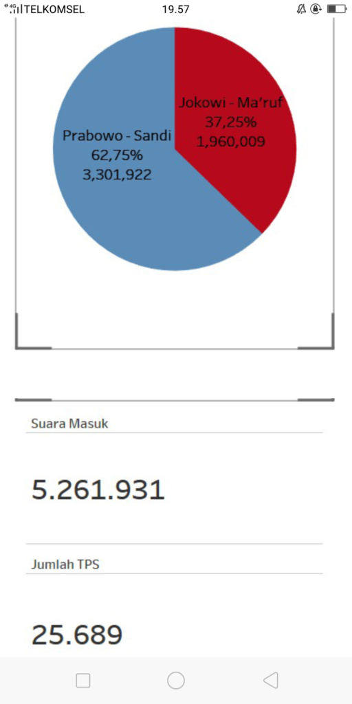 Data ini cukup mengejutkan karena sama dengan data BPN Prabowo Sandi yang menyebutkan Prabowo unggul 62 persen dari lebih 80 persen suara yang sudah masuk.