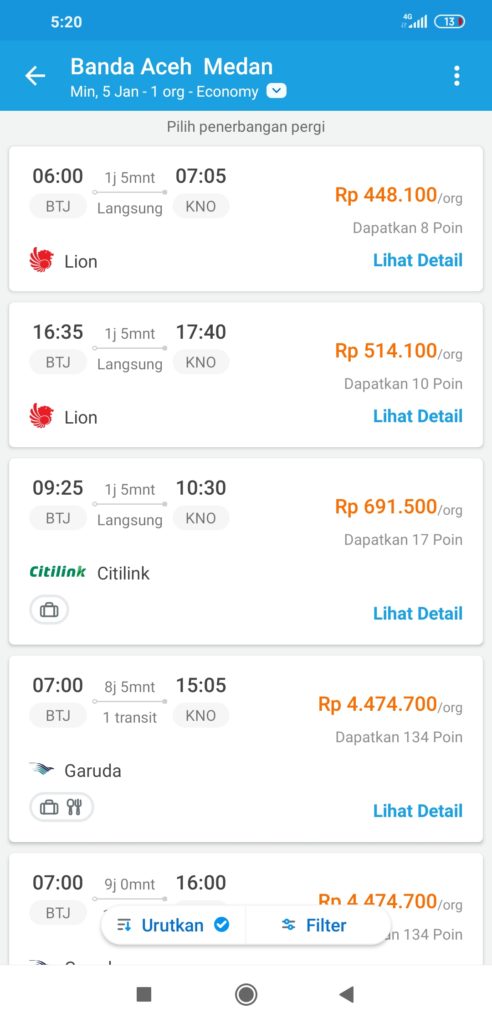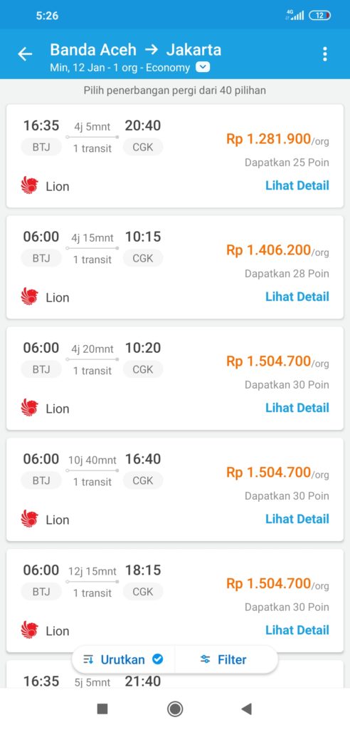 Sedangkan rute Banda Aceh - Jakarta biasanya dikisaran Rp 1,6 jutaan turun menjadi Rp 1,2 jutaan.