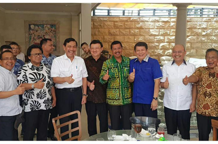 MEDAN-Menteri Koordinator Kemaritiman (Menko Maritim) Luhut Binsar Panjaitan bersama Menteri Sekretaris Negara (Mensesneg) Pratikno, Menteri Koordinator (Menko) Perekonomian Darmin Nasution dan Gubernur Sumatera Utara (Gubsu) Tengku Erry Nuradi memimpin rapat akhir persiapan ngunduh mantu Presiden Joko Widodo (Jokowi), Muhammad Bobby Afifi Nasution dan Kahiyang Ayu di Medan.
