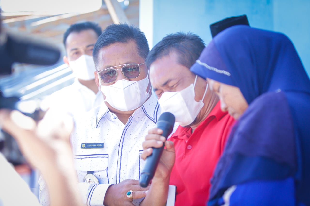 Firman dan Risna tampak bahagia, senyum lepas pada raut wajah keduanya ketika Wali Kota Aminullah memasuki rumah baru mereka.