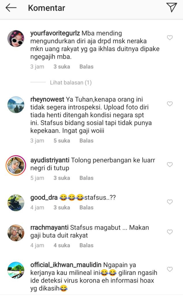 “Kayak gini nih kerjaan stafsus yang gajinya puluhan juta?” tulis @ramardia****.