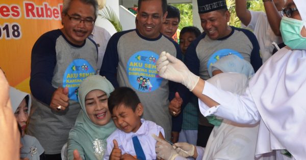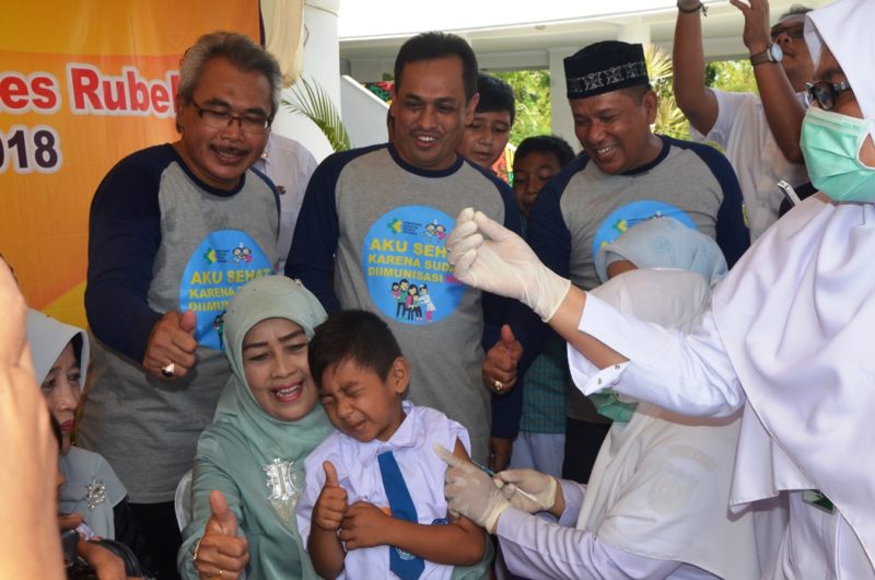 Banda Aceh – Wakil Wali Kota Banda Aceh Zainal Arifin mencanangkan kampanye imunisasi Measles Rubella (MR) di Banda Aceh, Rabu (1/8/2018). Sasaran imunisasi MR ini adalah anak berusia 9 bulan hingga 15 tahun yang merupakan kelompok paling rentan tertular penyakit Campak dan Rubella.
