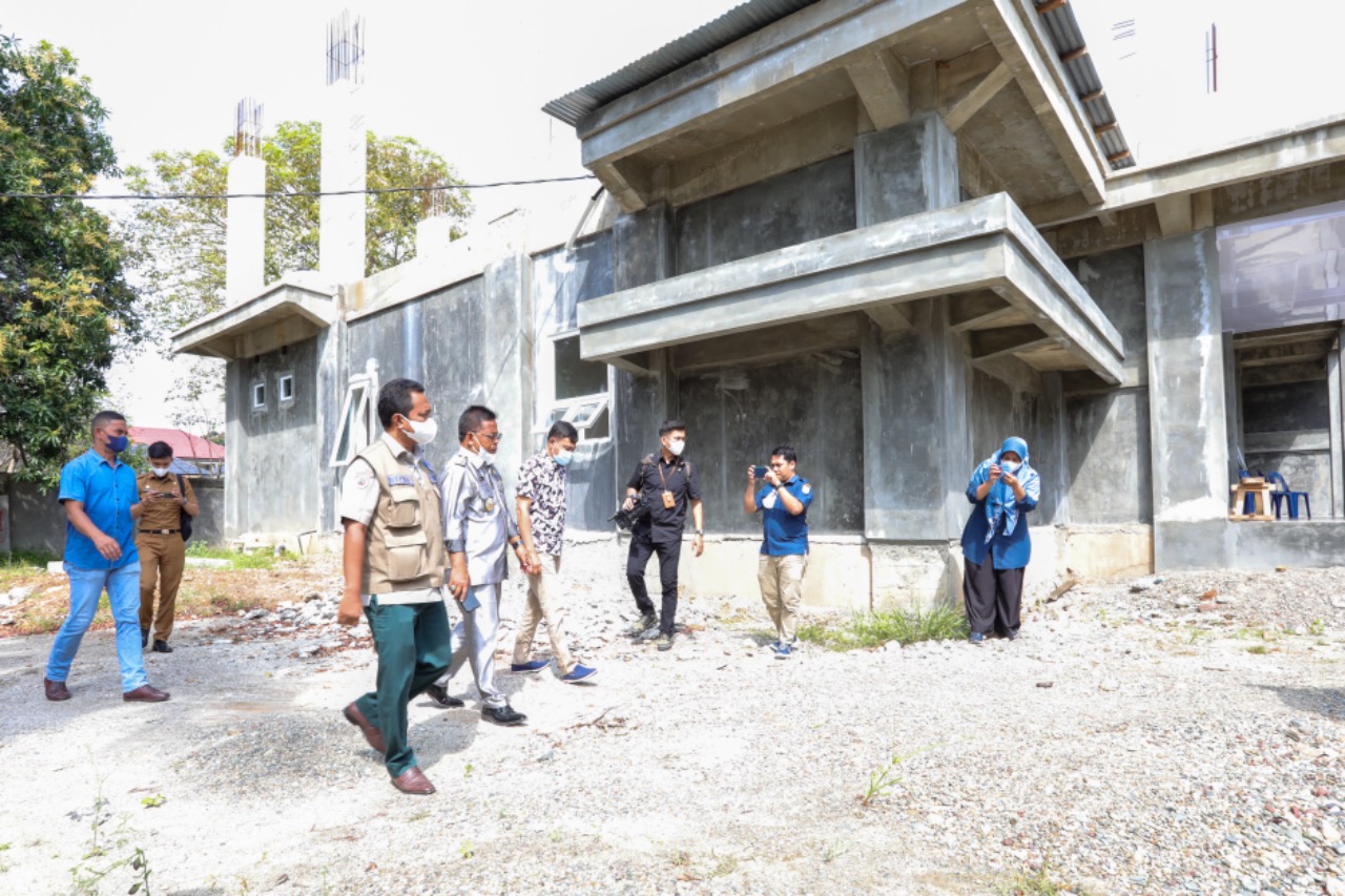 Banda Aceh – Wali Kota Banda Aceh Aminullah Usman meninjau pembangunan gedung baru kantor Badan Penanggulangan Bencana Daerah (BPBD) Kota Banda Aceh yang terletak di Gampong Ilie, Kecamatan Ulee Kareng, Selasa 18 Januari 2022.