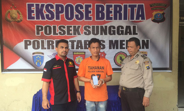 MEDAN–Personel Unit Reskrim Polsek Sunggal mengamankan seorang pencuri handphone dari Jalan Kaka Tua Gang Wakaf Kelurahan Sei Sekambing B Kecamatan Medan Sunggal.