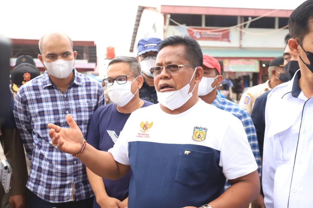 Banda Aceh – Wali Kota Banda Aceh Aminullah Usman meninjau kembali pembangunan Infrastruktur fasilitas pendukung di Pasar Al-Mahirah, Lamdingin, Kuta Alam, Rabu, (20/10/2021).